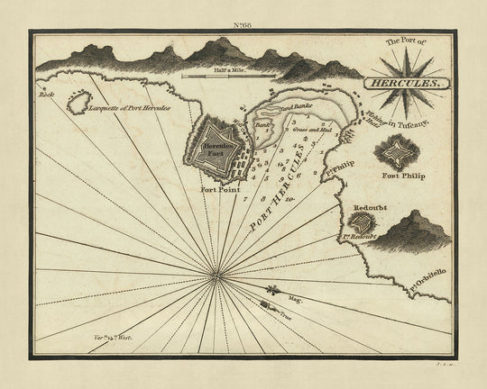 Old Port of Hercules, Italy Nautical Chart by Heather, 1802: Tuscany Coastline, Fort Point