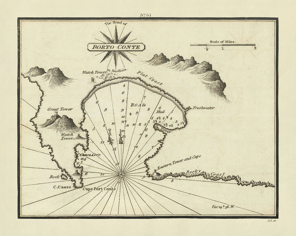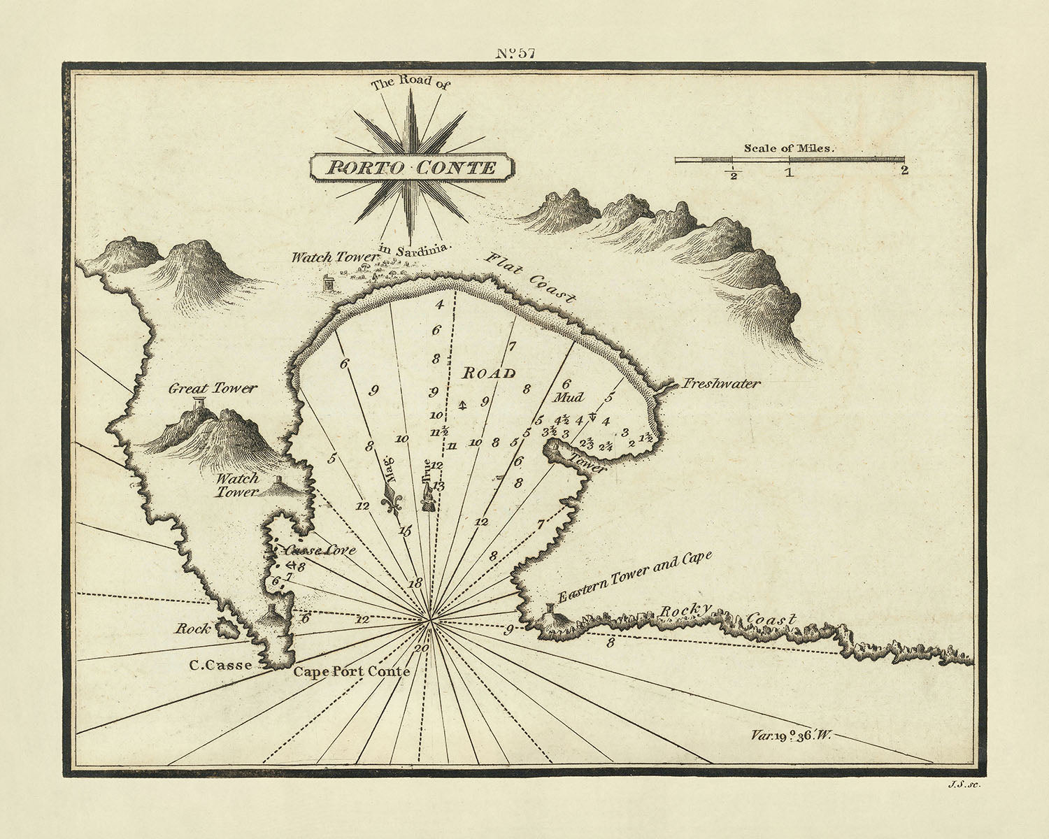 Old Porto Conte Nautical Chart by Heather, 1802: Sardinia, Soundings, Towers, Coastline