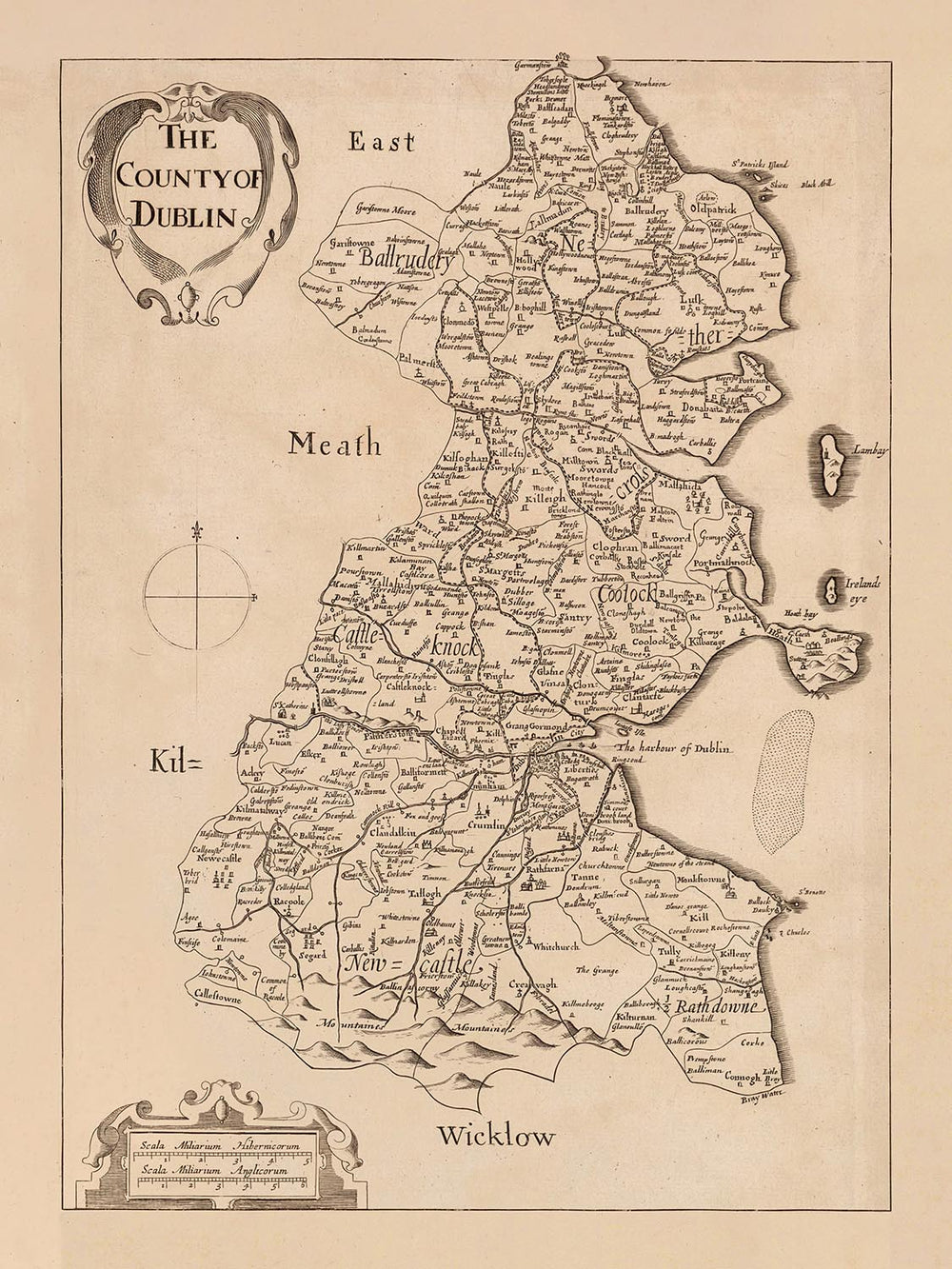 Old Map of County Dublin by Petty, 1685: Dublin, Swords, Malahide, Skerries, Blackrock, Clondalkin