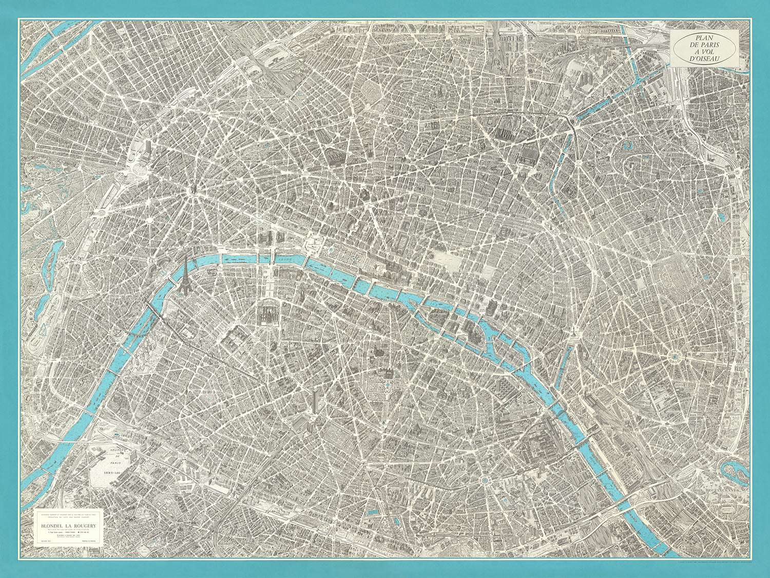 Blondel La Rougery's "Plan de Paris à Vol d'Oiseau" is not merely a navigational tool but a work of art that encapsulates the essence of Paris. The map's artistic style, combining precision with aesthetic appeal, offers a timeless portrayal of the city's streets, boulevards, and riverbanks. It stands as a bridge between past and present, capturing the pulse of a city that has long been a nexus of culture, history, and art. For collectors and admirers of Paris, this map is a treasure that transports the viewer through the avenues of time, offering an unparalleled journey through the city's storied landscape.