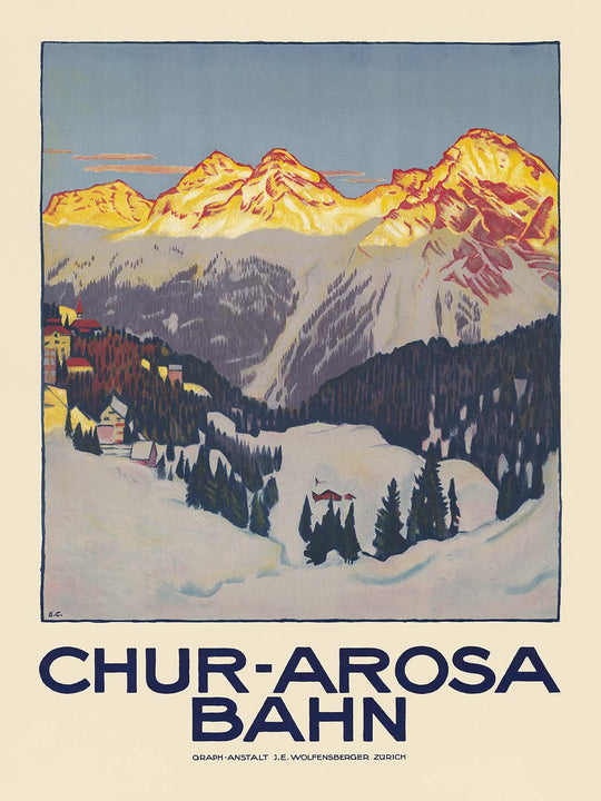 Switzerland Travel Poster: Chur-Arosa Bahn by Theodor Barth, 1915