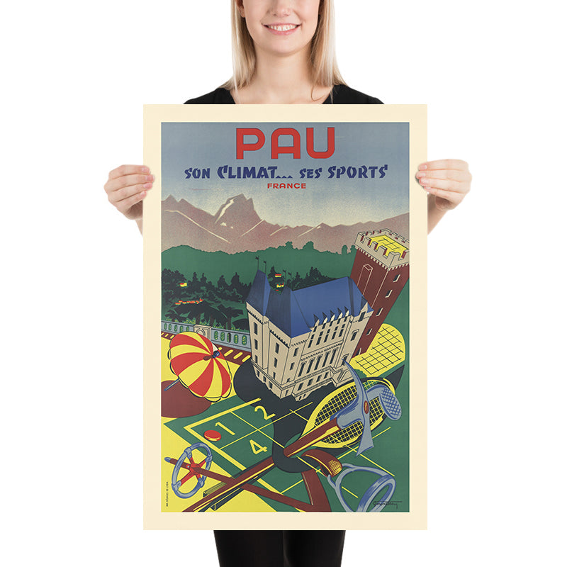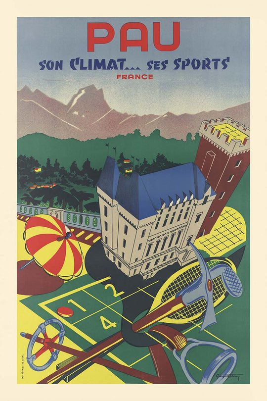 Pau Travel Poster: Son climat… ses sports by Georges Reben, 1935