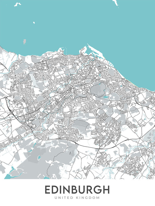 This original creation by The Unique Maps Co. features a modern detailed street map without labels, allowing the viewer to appreciate the intricate network of roads and streets that define Edinburgh. The map's color palette is carefully chosen to highlight the city's landmarks and natural features, creating a visually captivating composition. The result is a map that is both informative and aesthetically pleasing, making it a wonderful addition to any space.