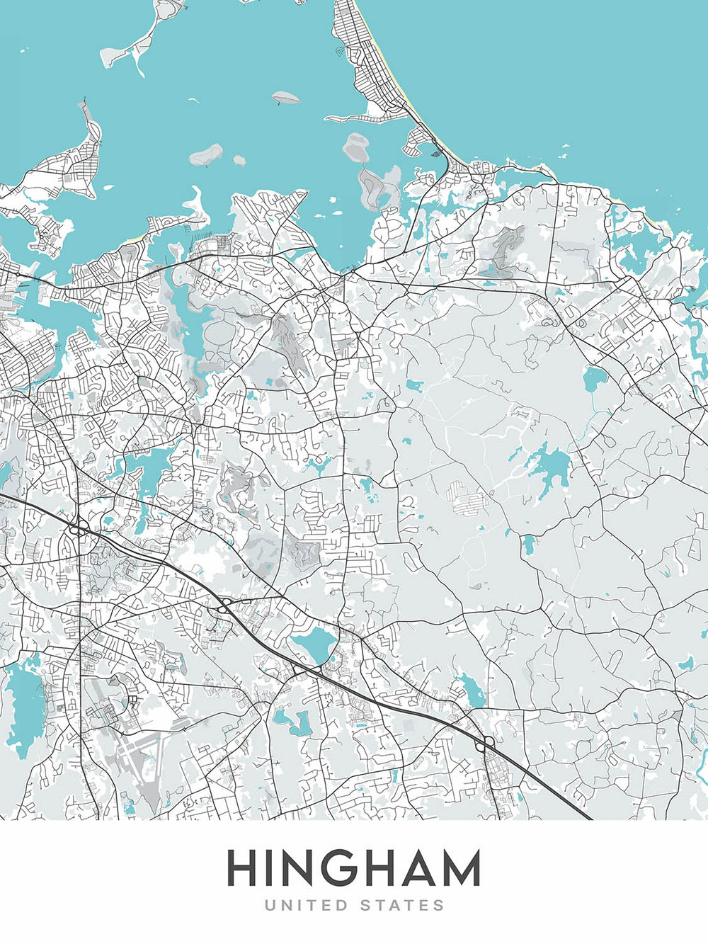 The map is printed on high-quality paper and is available in a variety of sizes. It is the perfect addition to any home or office, and it makes a great gift for anyone who loves Hingham, Massachusetts.
