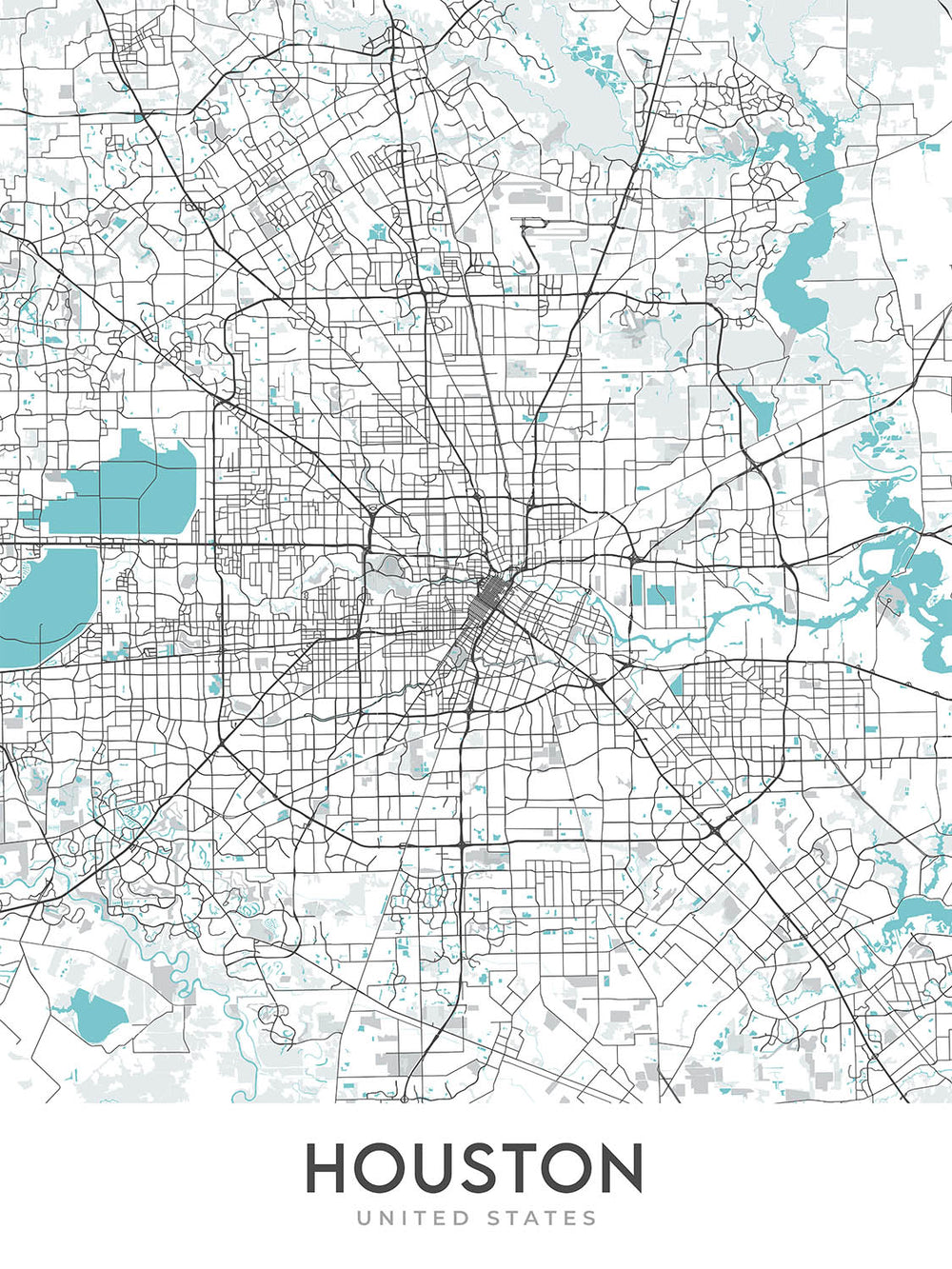 Overall, this map of Houston is a must-have for anyone who appreciates modern design, cartography, and the unique character of this dynamic city. It is an excellent addition to any home or office, serving as a beautiful conversation piece and a source of inspiration for exploring the diverse neighborhoods, landmarks, and attractions that Houston has to offer.