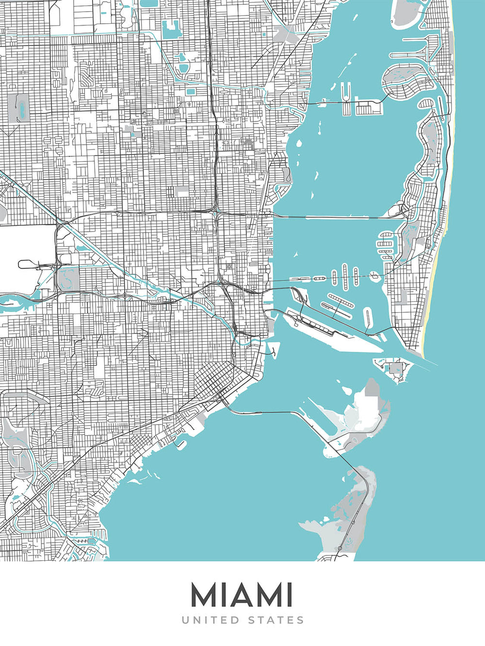 This map is the perfect way to explore all that Miami has to offer. It is a beautiful and informative piece of art that will add a touch of style to any home or office.