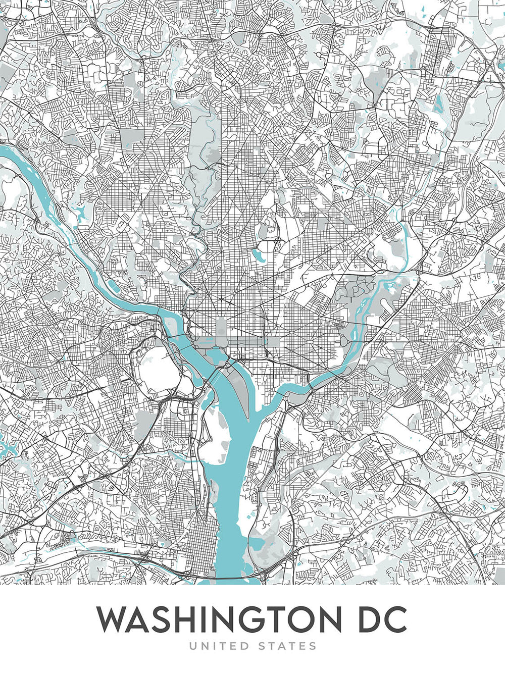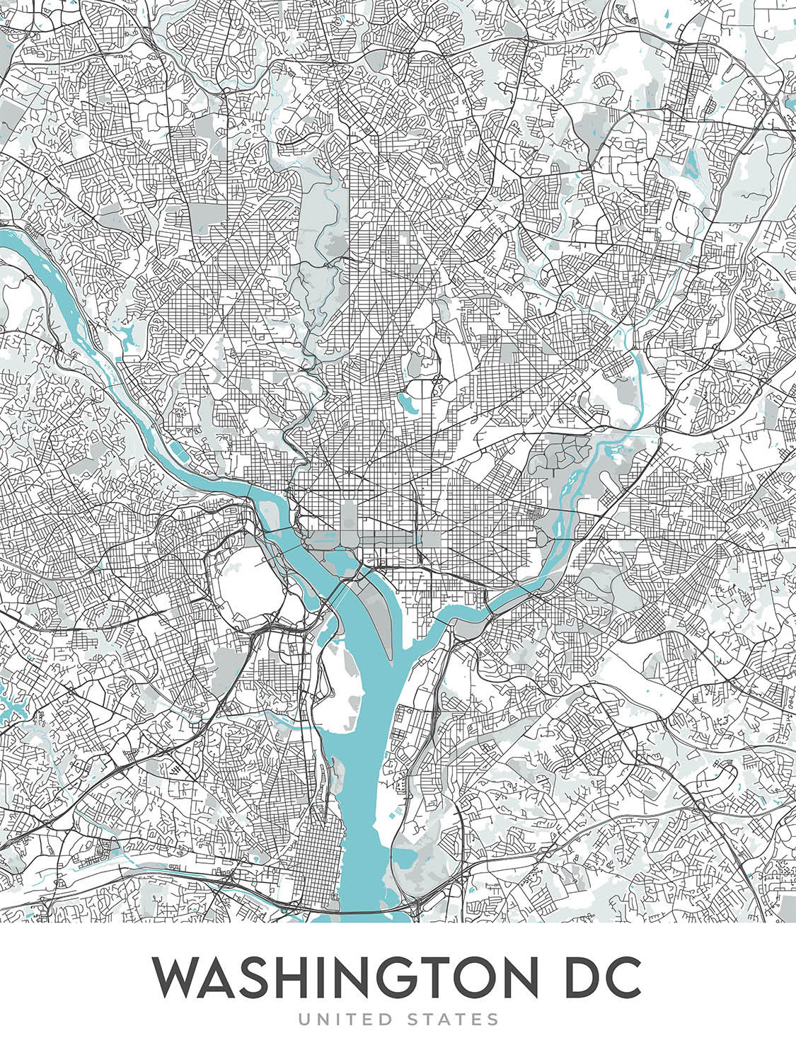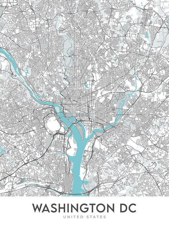 Modern City Map of Washington, DC: White House, Capitol Hill, National Mall, Georgetown, Dupont Circle
