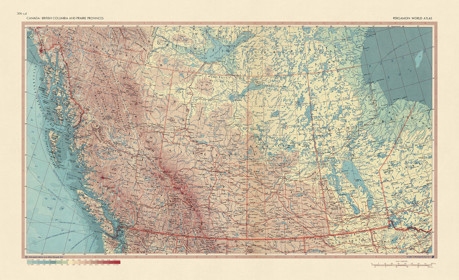 Old Map of Canada, 1967: Edmonton, Calgary, Vancouver, Winnipeg, Rocky Mountains