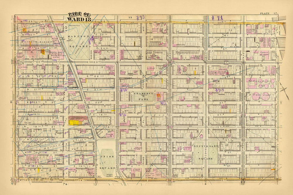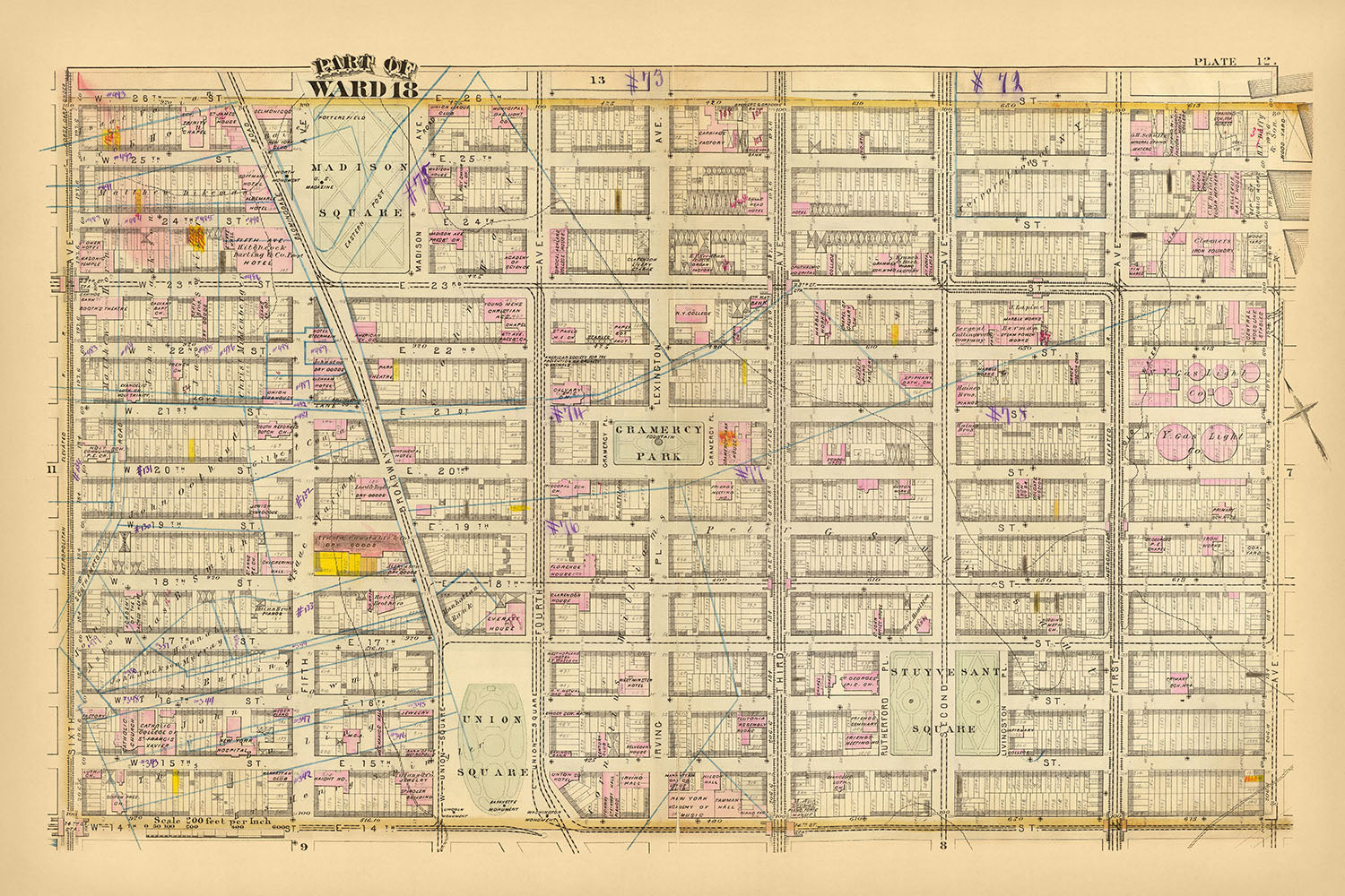 Old Map of New York City's Ward 18 by Bromley, 1879: Madison Square, Gramercy Park, Stuyvesant Square, Union Square, Tammany Hall