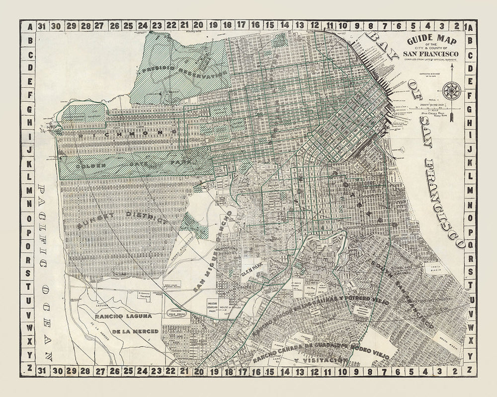 Old Map of San Francisco, 1895: Richmond, Western Addition, Potrero, Mission, Rancho Laguna & San Miguel