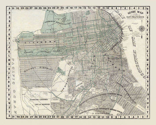 This 1895 map, titled 'Guide map of the city & county of San Francisco', provides an exceptionally detailed overview of the city at the turn of the 20th century. Published anonymously, the map captures a period of rapid growth and transformation for San Francisco, making it a valuable historical document.