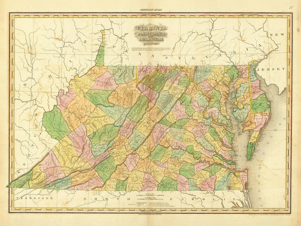 Old Map of Virginia, Delaware, Maryland and Washington D.C. by H. S. Tanner (1820): Featuring Baltimore, Alexandria, Norfolk, Richmond, and Wilmington
