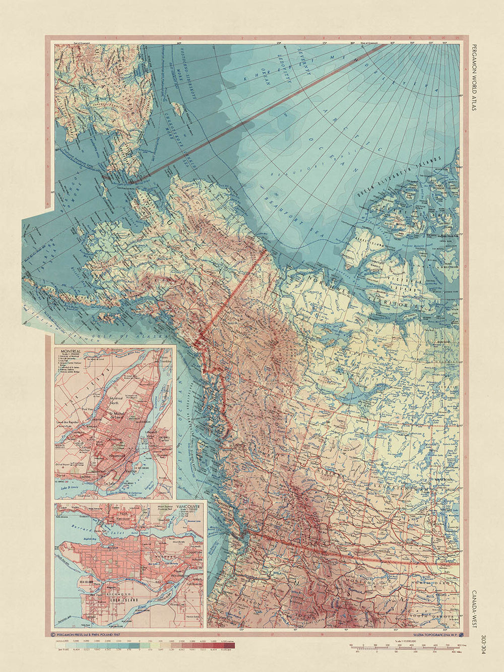 Old Map of Western Canada, 1967: Montreal, Vancouver, Yukon, Northwest Territories, British Columbia, Alaska