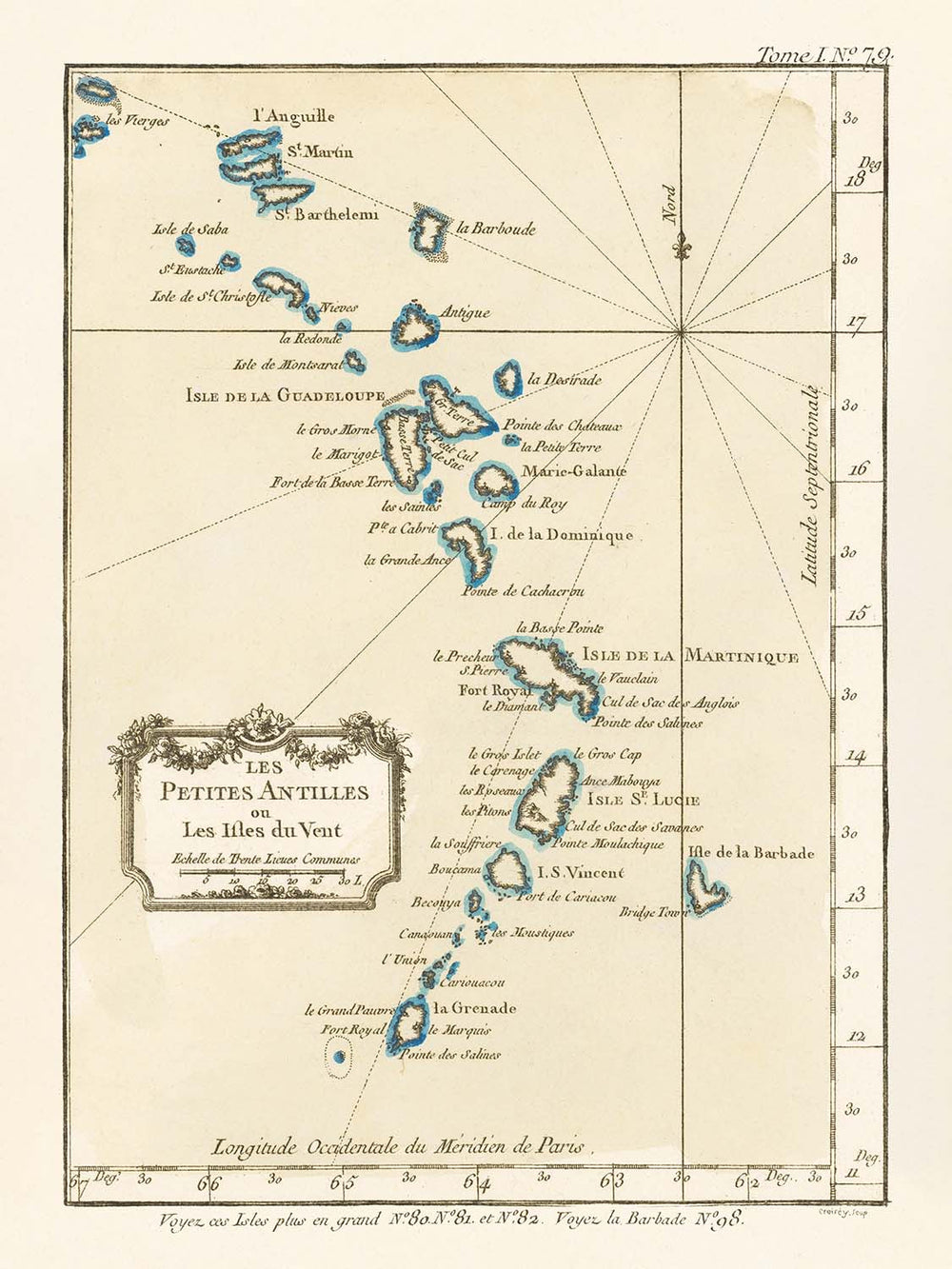 Within the map’s boundaries, a tapestry of human settlement emerges. Bellin’s chart identifies key colonial towns and ports that would become the vibrant capitals and economic centers of the modern Caribbean. Notable among these are Bridgetown in Barbados, Saint-Pierre and Fort Royal (now Fort-de-France) in Martinique, Basse-Terre and Pointe-à-Pitre in Guadeloupe, and St. John’s in Antigua. These towns, marked on the map, were vital nodes in the web of colonial administration, commerce, and culture, their fortunes rising and falling with the tides of empire and trade.