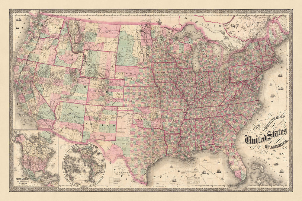 - Shows the entire U.S. in 1874, with inset maps of North America and the Western Hemisphere