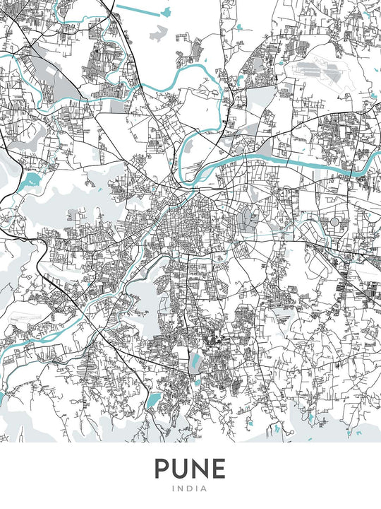 Beyond its decorative potential, this map offers a unique way to celebrate and acknowledge the city of Pune. Known for its educational institutions, historical sites, and vibrant cultural scene, Pune is a city of contrasts and continuities. This map captures not just the physical layout but also the spirit of the city, from the bustling streets of Deccan Gymkhana to the serene expanses of Pashan Lake. It invites viewers to embark on a visual journey through the city’s diverse neighbourhoods and landmarks, making it a perfect gift for anyone with a connection to Pune.