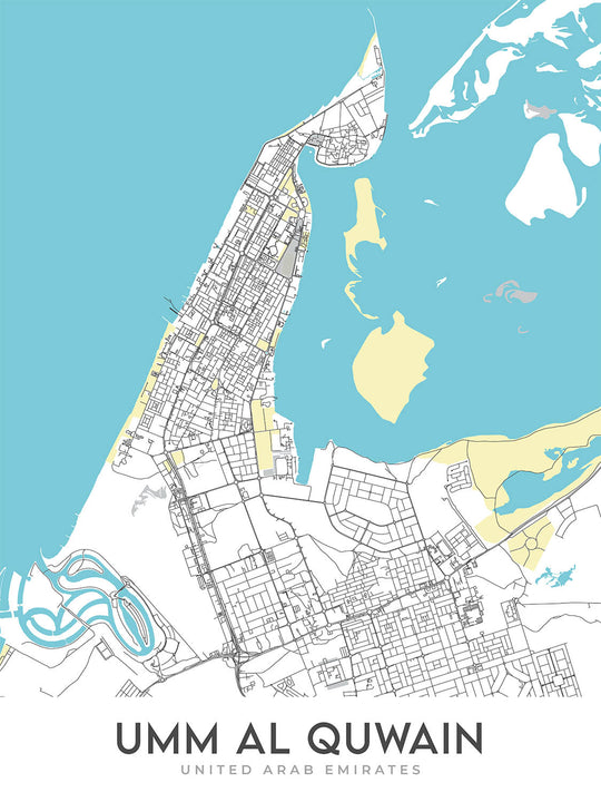 This map of Umm Al Quwain is a must-have for anyone who loves maps, art, or interior design. It is a beautiful and informative piece that will add a touch of sophistication to any home or office.