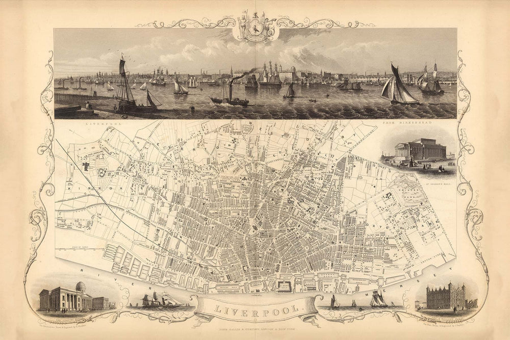 Engraved by John Rapkin and published by J. Tallis & Co in 1851, this is one of the finest and most detailed historic maps of Liverpool that you can find from the peak of industrialised Victorian Britain.