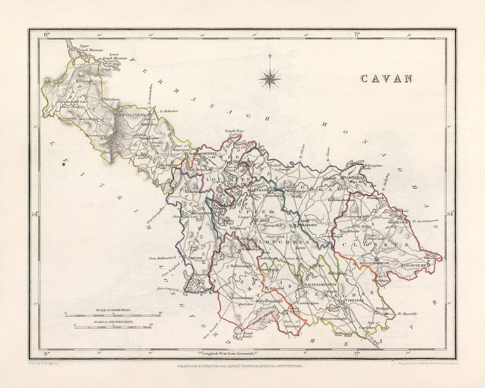 Owning this extraordinary old map of County Cavan by Samuel Lewis from 1844 allows you to delve into the past, explore the region's historical landscape, and appreciate the intricate details that make it a truly remarkable piece of cartographic art.