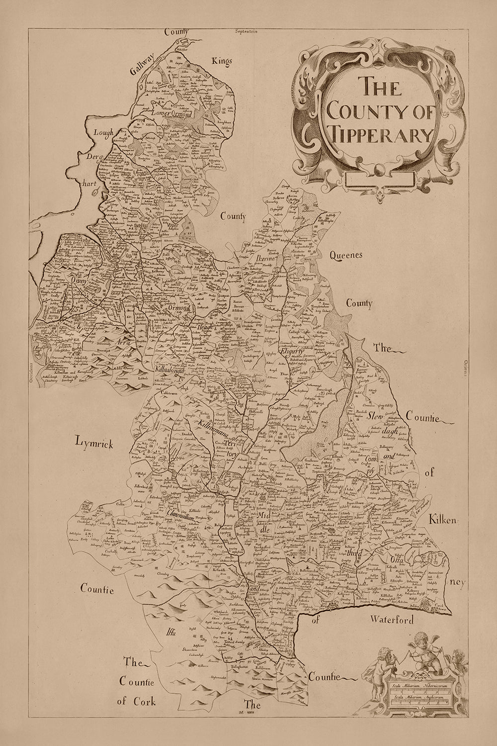 Old Map of County Tipperary by Petty, 1685: Cashel, Clonmel, Fethard, Nenagh, Roscrea