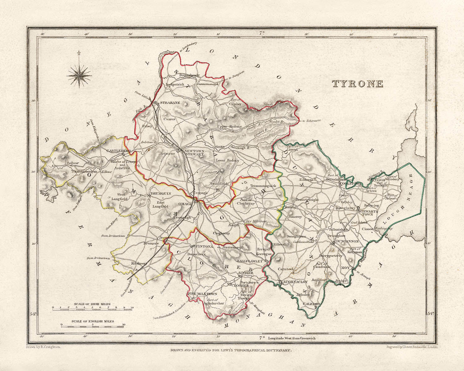 Own a piece of history with this old map of Tyrone by Samuel Lewis, 1844, and delve into the fascinating past of this Irish county.