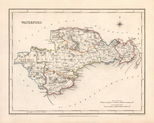 Old Map of County Waterford by Samuel Lewis, 1844: Dungarvan, Lismore, Cappoquin, Tramore, Dunmore East