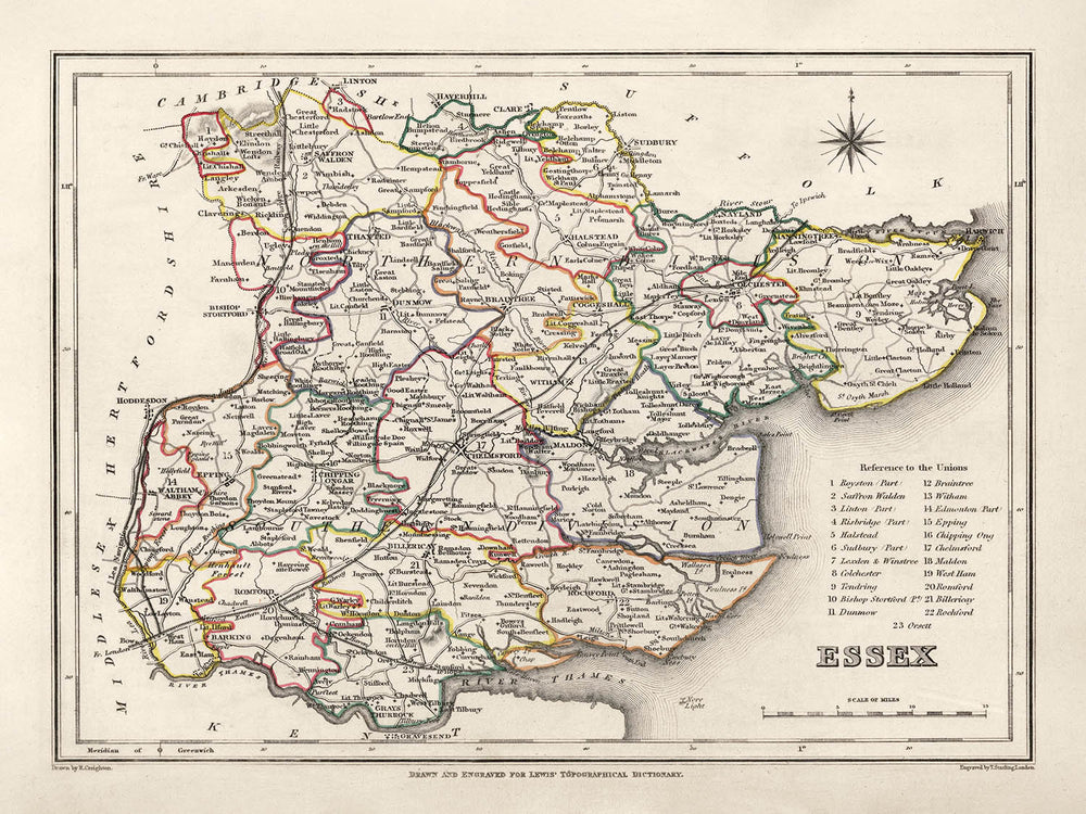 This wonderful old map of Essex was originally published in 1844. It was created by Samuel Lewis.