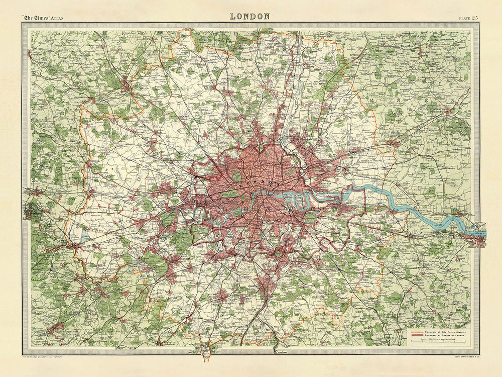 Delve into the rich history and intricate geography of London with this exquisite 1922 map, published by the prestigious Times newspaper. Known for its meticulous attention to detail and historical accuracy, The Times has outdone itself with this offering, providing not only a map but a snapshot of London during a pivotal moment in its history.