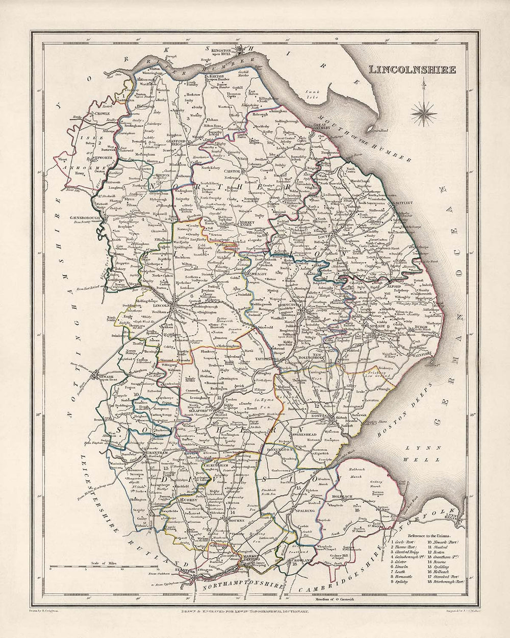 This meticulously crafted Old Map of Lincolnshire by Samuel Lewis in 1844 offers a captivating glimpse into the historical landscape of the County of Lincolnshire, England. With its exquisite detail and intricate cartography, this map serves as a remarkable testament to the rich history and cultural heritage of the region. Featuring the main towns, cities, and other fascinating features, excluding Lincolnshire itself, this map provides a unique perspective on the area's past.
