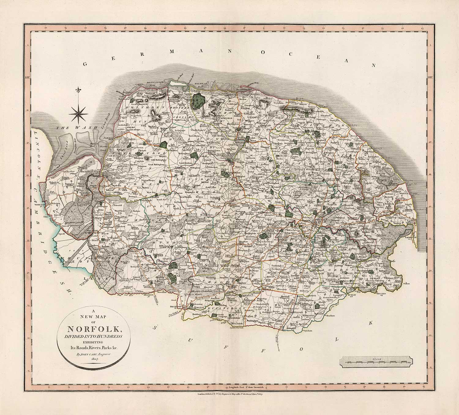 This wonderful old map of Norfolk was originally published in 1807. It was created by John Cary.