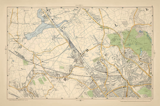 Sheet 5 from Bacon's New Large Scale Atlas of London and Suburbs, crafted in 1900 by the esteemed G.W. Bacon & Co., offers a captivating glimpse into the evolving landscape of North London at the dawn of the 20th century. This map elegantly captures a city in transition, where the burgeoning Victorian architecture meets the sprawling fields yet to be developed. The delicate balance of detail and color invites the viewer to explore a time when London was on the cusp of modernity, with its rich tapestry of neighborhoods and natural beauty.