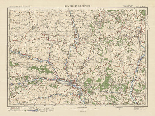 The "Sheet 122 - Salisbury & Bulford" map from Ordnance Survey's One-inch "Popular" edition, England and Wales, published in 1925, is a captivating piece of history that provides a detailed snapshot of the Salisbury and Bulford region during that time. This meticulously crafted map showcases the towns, cities, and interesting features of the area, including Andover, Amesbury, Wilton, Stockbridge, and the Cranborne Chase Area of Outstanding Natural Beauty (AONB).