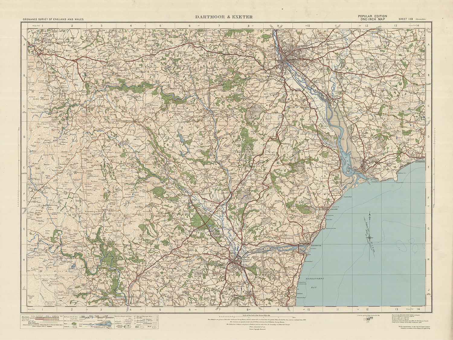 Old Ordnance Survey Map, Sheet 138: Dartmoor & Exeter, 1925: Exmouth, Teignmourth, Dawlish, Newton Abbot, Budleigh Salterton