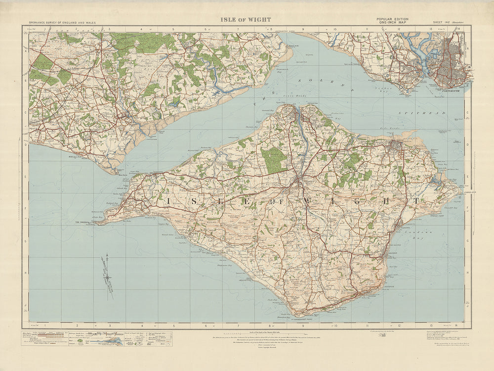 Old Ordnance Survey Map, Sheet 142: Isle of Wight, 1919-1926: Portsmouth, Newport, Ryde, Cowes, Gosport, Carisbrooke Castle, The Needles, Osborne House