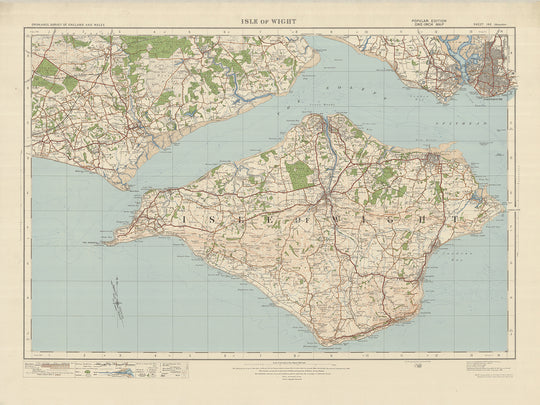 Within the confines of this beautifully detailed map, you'll find yourself traversing the breath-taking Isle of Wight and parts of Hampshire. With a unique blend of coastal and rural landscapes, this map showcases several of the region's major towns, gently winding rivers, and remarkable hills. Additionally, it includes the land and sea borders that define this part of the British Isles.