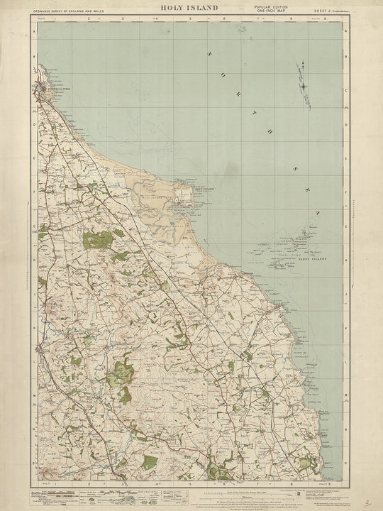 Old Ordnance Survey Map, Sheet 2: Holy Island, 1919-1926: Belford, Wooler, Seahouses, and Berwick-upon-Tweed