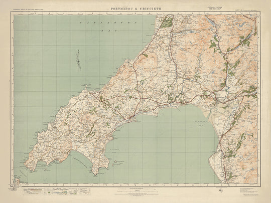 Old Ordnance Survey Map, Sheet 49: Portmadoc & Criccieth, 1925: Harlech, Pwllheli, Abersoch, Yr Wyddfa (Mt Snowdon), Eryri National Park