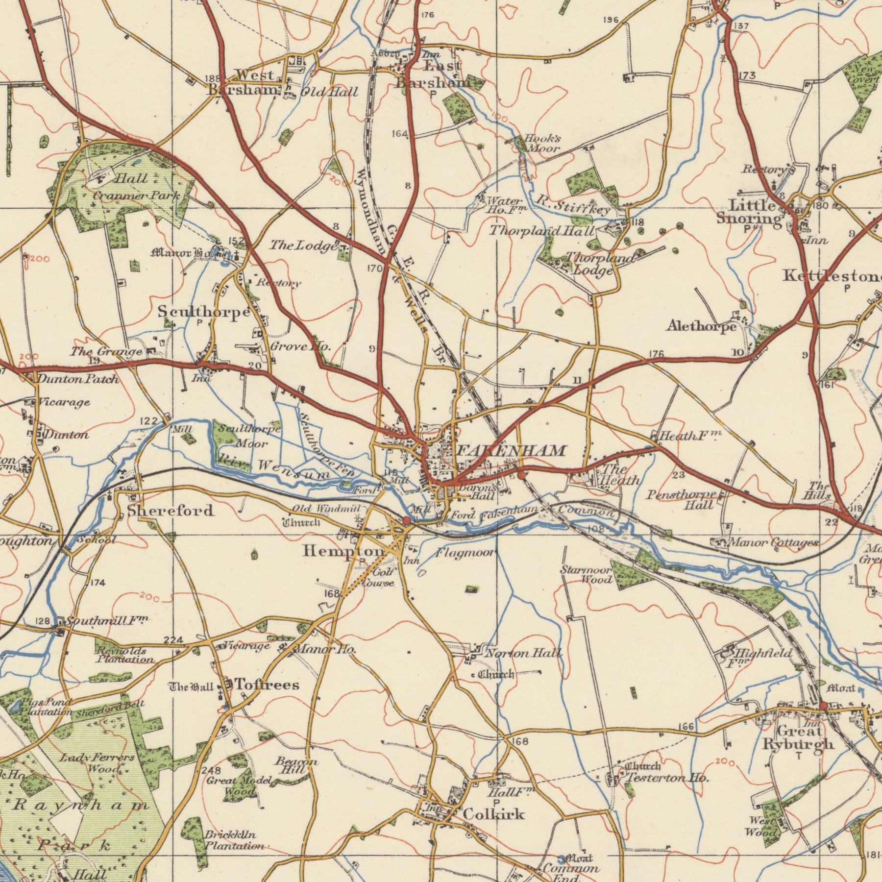 Old Ordnance Survey Map, Sheet 57: Fakenham, 1925: Holt, Burnham Market, Little Walsingham, Briston, Norfolk Coast AONB