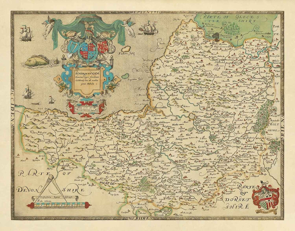 Created almost 450 years ago, this is the first ever printed map of Somersetshire. It was originally published by Christopher Saxton, the father of British cartography. It is a beautiful, highly detailed and extremely rare old map.