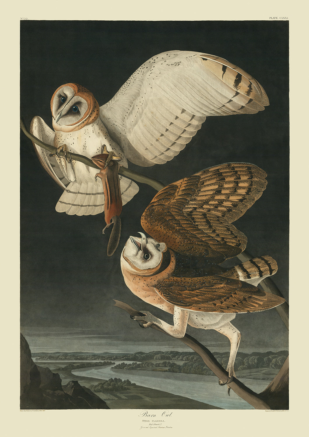 Barn Owl from 'Birds of America' by John James Audubon, 1827