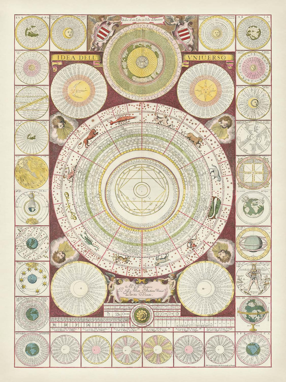 Coronelli's "Idea of the Universe" Cosmographical Chart, 1690