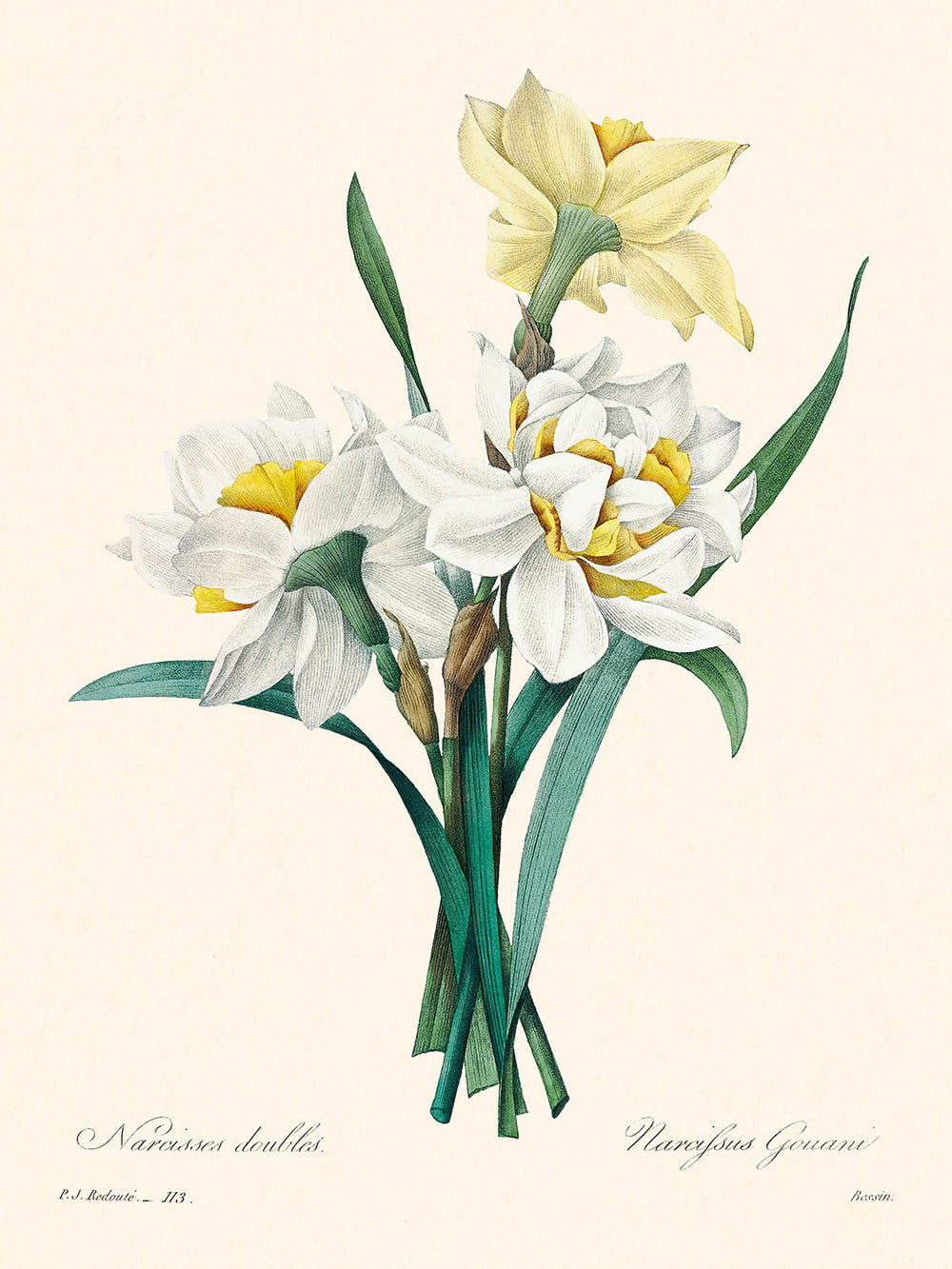 Double Daffodil Botanical Illustration by Pierre-Joseph Redouté, 1827