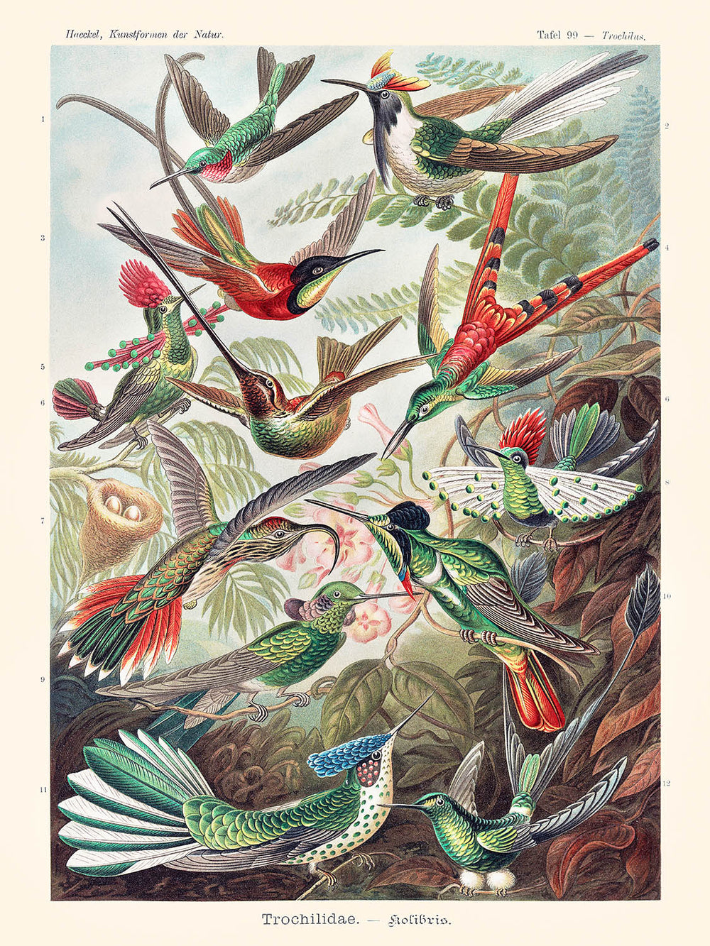 Hummingbirds (Trochilidae Kolibris) Illustration by Ernst Haeckel, 1904