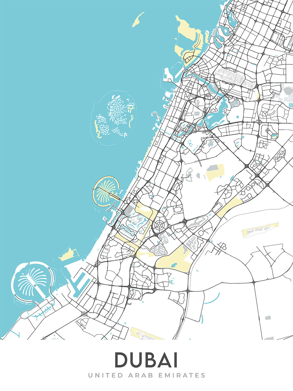 This map is a celebration of Dubai's dynamic spirit and ever-changing skyline. It encapsulates the essence of this cosmopolitan city, where tradition and modernity coexist harmoniously. Whether you have a personal connection to Dubai or simply appreciate the beauty of modern cartography, this map is a must-have for your collection.