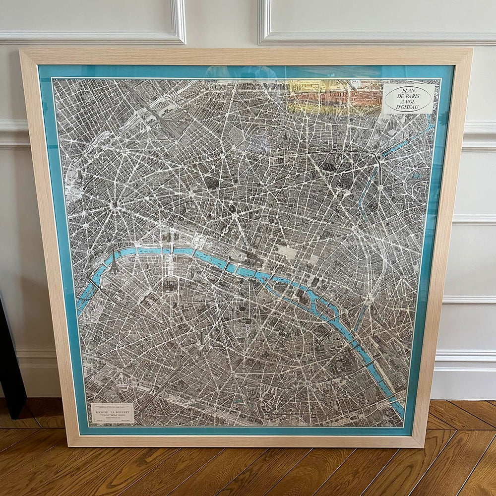 Blondel La Rougery's "Plan de Paris à Vol d'Oiseau" is not merely a navigational tool but a work of art that encapsulates the essence of Paris. The map's artistic style, combining precision with aesthetic appeal, offers a timeless portrayal of the city's streets, boulevards, and riverbanks. It stands as a bridge between past and present, capturing the pulse of a city that has long been a nexus of culture, history, and art. For collectors and admirers of Paris, this map is a treasure that transports the viewer through the avenues of time, offering an unparalleled journey through the city's storied landscape.