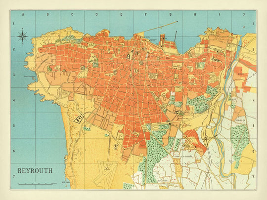The map elegantly highlights significant neighborhoods such as Fourni ECH Chebbak and ECH Chyah, each steeped in rich history and cultural significance. These areas, depicted with precision, reveal the intricate tapestry of Beirut's urban development. The inclusion of these neighborhoods offers a fascinating perspective on the city's diverse communities and their unique contributions to Beirut's dynamic character.