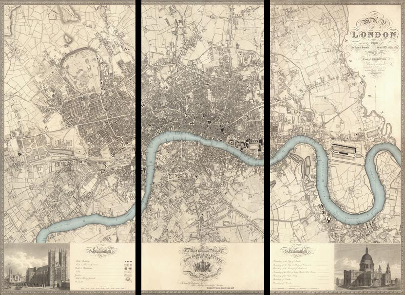 The Greenwood 1830 map of London is one of the finest ever made of England's capital - and the most beautiful and impactful way to display it is as a triptych.