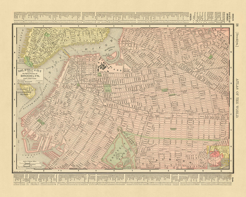 The 'Rand, McNally & Co's Map of the Main Portion of Brooklyn' is more than just a geographical representation; it is a historical artifact that captures the spirit and character of a city on the cusp of monumental change. It offers a window into the past, inviting you to explore the streets of Brooklyn as they were over a century ago. Whether you're a history enthusiast, a lover of maps, or simply someone with a fondness for New York City, this map is sure to enchant and inspire.