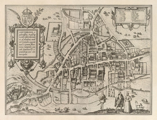 Old Map of Cambridge and University Colleges, 1575 by Georg Braun: Trinity, Kings, Queens, Clare