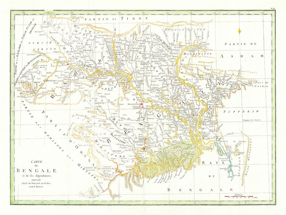 This is a fascinating and historically significant map of Eastern India and Bangladesh, created by William Bolts in 1773. Bolts was a Dutch merchant who lived in India for many years, and his map is one of the most accurate and detailed maps of the region produced during the 18th century.